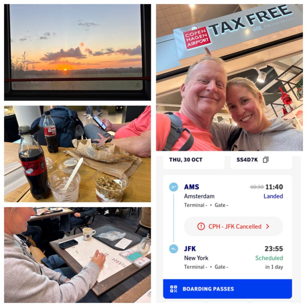 Na een kopje koffie met een broodje ei gaan we door naar de gate, en daar krijgen we even later het bericht dat onze vlucht vertraagd is. Een uur. En dat terwijl we in Kopenhagen 1 uur en 5 minuten zouden hebben om over te stappen…. NEEEE…