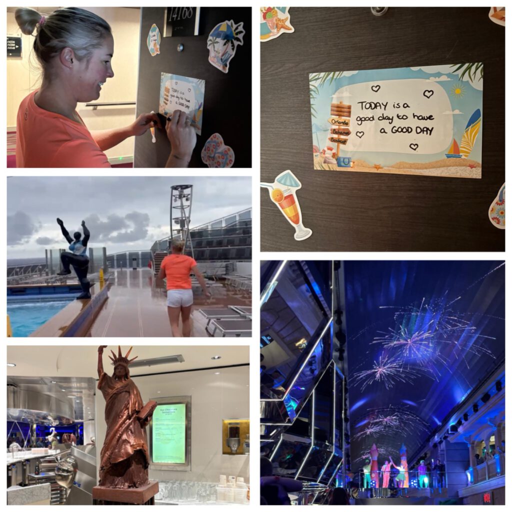 Na een zeedag komen we vanmiddag aan in Cape Canaveral (in de buurt van Orlando, vlakbij het Spacecenter). Maar niet voordat we lekker hebben ontbeten en een ontspannen ochtendje in de zon hebben op het volwassenendek. Inmiddels is het een heerlijk klimaat (hier zijn we gewoon voor gemaakt hahaha) dus het is echt genieten met een boekje en een muziekje. We drinken een (alcoholvrije) Pina Colada en Linda neemt een erg frisse duik in het zwembad. Hugo zoekt de jacuzzi op, en zo komen we de ochtend wel door.